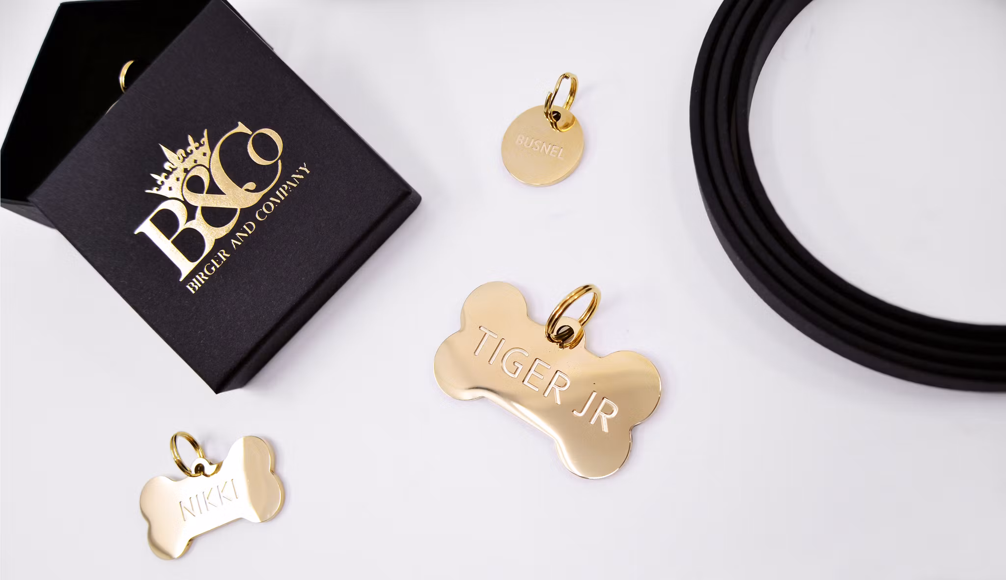 Birger and Company's polerade mässing namnbrickor.
