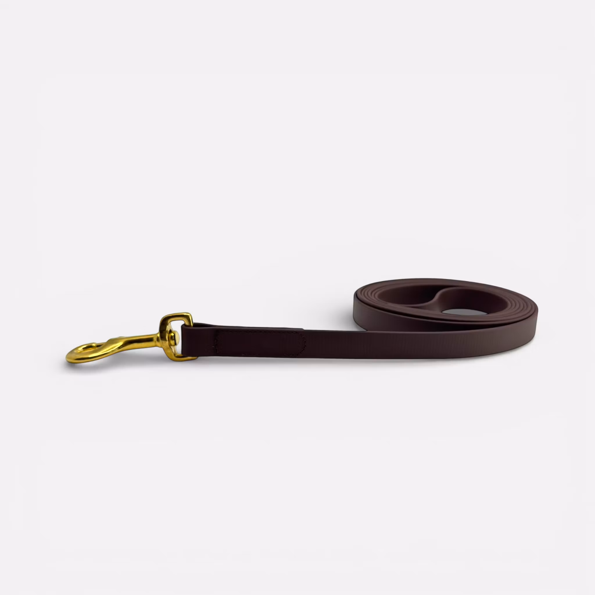 Vårt stilrena och slitstarka BioThane® grimskaft är följsamt och ligger bekvämt i din hand. Med sina mässingdetaljer ger grimskaftet ett lyxigt och tidlöst intryck.