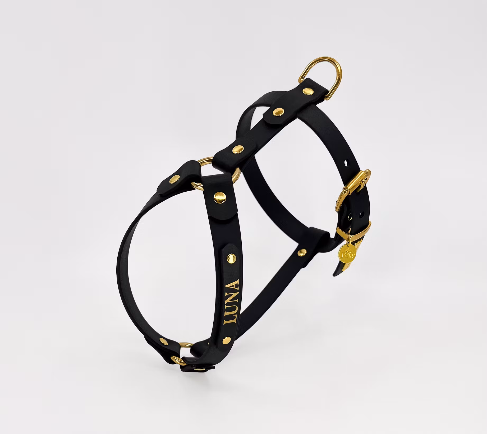 med mässing detaljer. Y sele - En ergonomisk sele som inte begränsar frambenens rörelse utan tillåter hunden ha kvar sitt naturliga rörelsemönster. BioThane® sköljs enkelt av i ljummet vatten vid behov och blir som nytt!